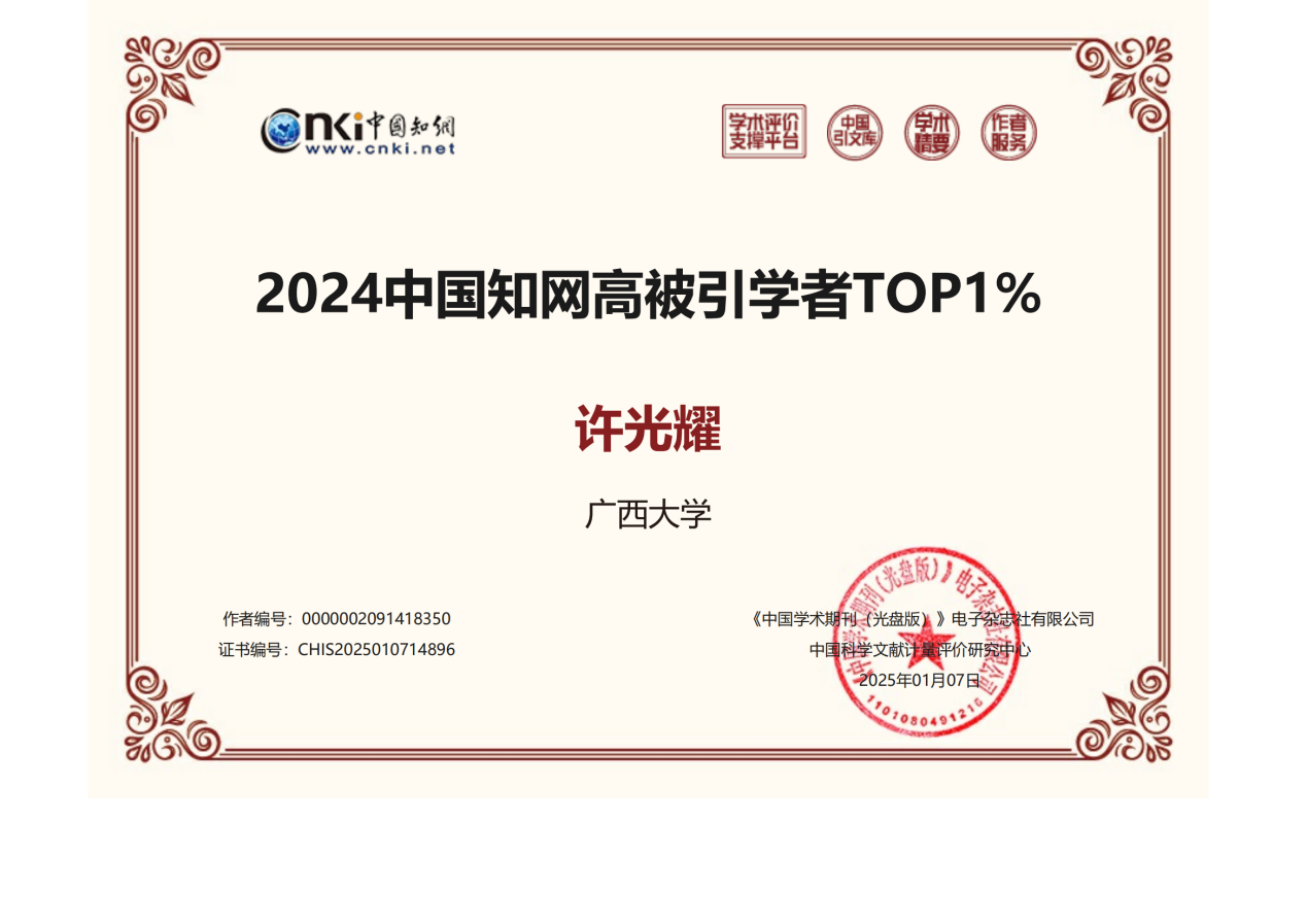 近日,中国知网中国科学文献计量评价研究中心(简称“知网评价中心”)基于中国知网收录的国内学术期刊论文和会议论文,2024年首次开展学者学术影响力客观评价,遴选并公布了“2024中国知网高被引学者”名单,永利官网许光耀、高一飞、管华三位教授入选法学学科“2024中国知网高被引学者TOP1%”榜单。